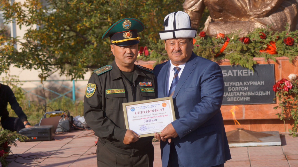 Баткен окуясынын катышуучуларына Тоң райондук мамлекеттик администрациясынын “Эмгек үзүрү” жана “Ардак грамоталары”, ошондой эле 10 миң сом өлчөмүндөгү акчалай сыйлыктар тапшырылды.